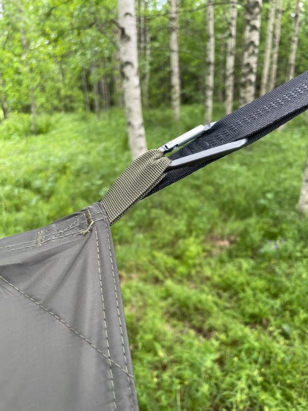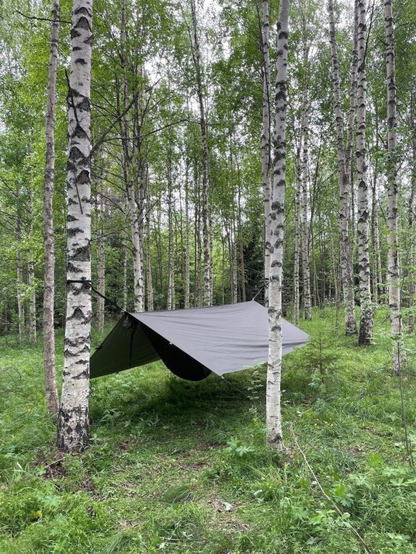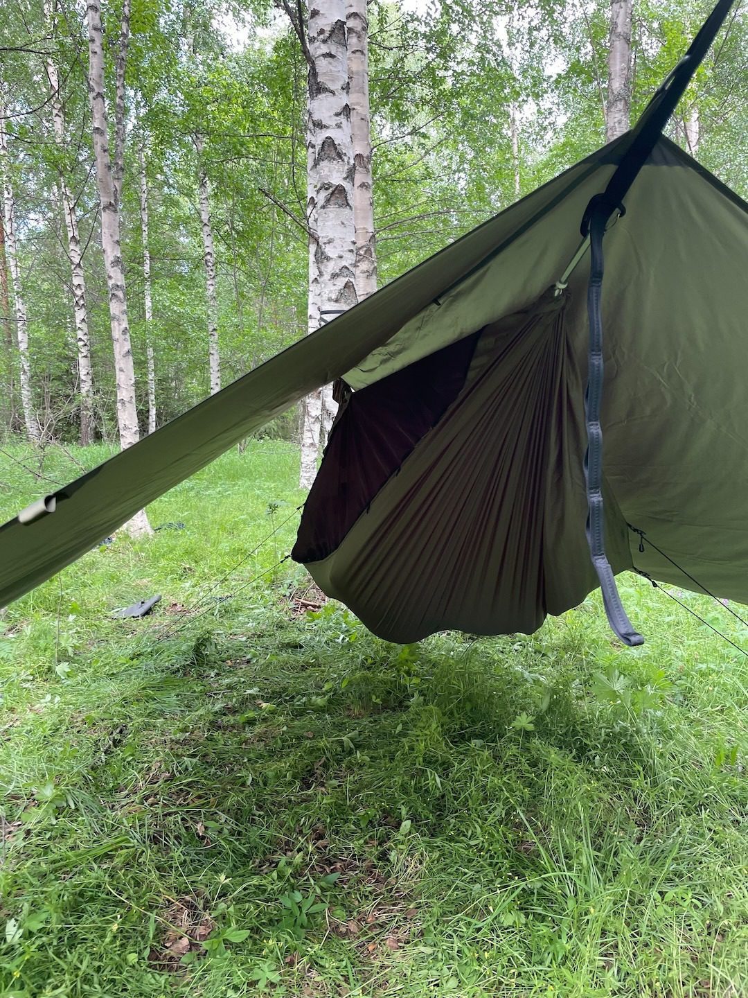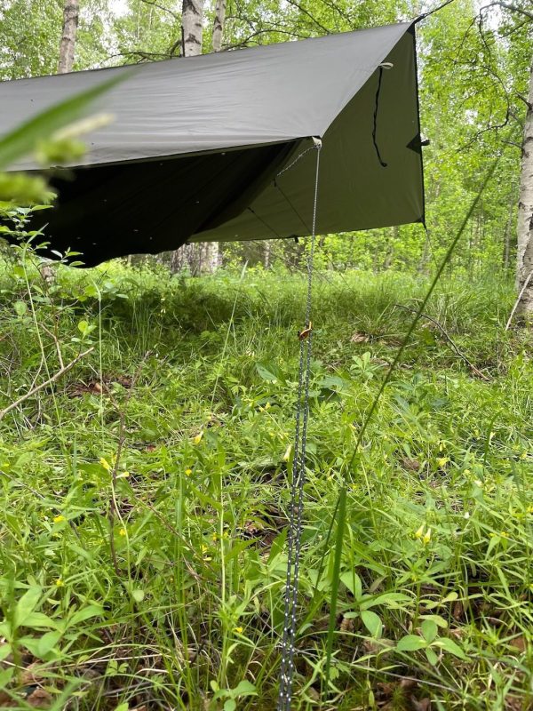 Good tarp! Sturdy tarp that withstands a lot. The first night I used it, there was a downpour and it was really windy. It stayed steady with the included ropes and tent pegs. It covered the Momo hammock well and kept me dry.