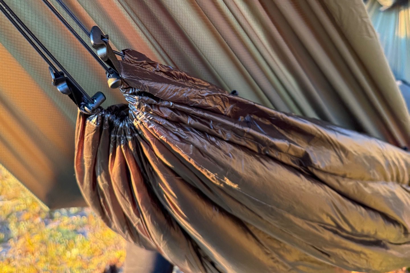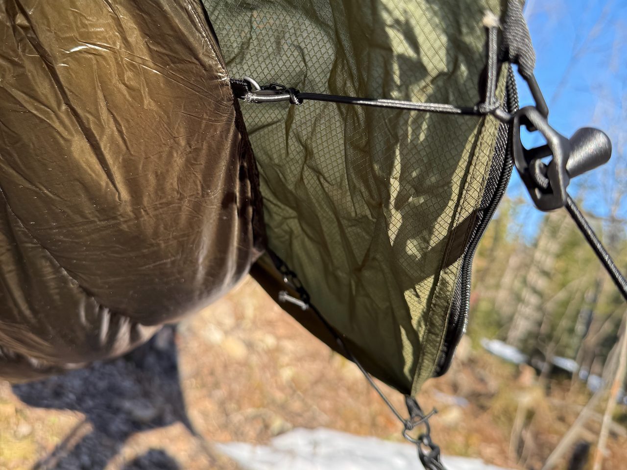 The underquilt’s bungee cord is generously sized, and it came with two carabiners, which made it easy to attach under the hammock.