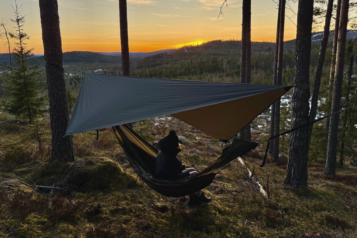The Jord Tarp keeps you dry and sheltered, while still letting you enjoy the forest view. It’s easy to set up, and strong enough to handle Nordic storms—I’ve trusted it in wild Hälsinge winds and stayed dry through downpours. Choose a lighter asymmetrical tarp for minimal coverage, or go big with a rectangular tarp for full protection and room for your gear.